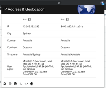ส่วนขยายนี้ยังมีการแสดงภาพของตำแหน่งของผู้ใช้บนแผนที่ ซึ่งช่วยเพิ่มความสะดวกสำหรับนักพัฒนาที่ต้องการข้อมูลตำแหน่งทางภูมิศาสตร์ที่แม่นยำ รายละเอียดของ user agent สามารถเข้าถึงได้อย่างง่ายดาย ซึ่งช่วยในการทำงานด้านการพัฒนาเว็บ ความปลอดภัยเป็นสิ่งสำคัญ เนื่องจากคำขอข้อมูลตำแหน่งทางภูมิศาสตร์ได้รับการรักษาความปลอดภัยด้วย TLSv1 และ Perfect Forward Secrecy ทำให้ข้อมูลของผู้ใช้ยังคงได้รับการปกป้อง ส่วนขยายนี้เป็นเครื่องมือที่มีค่าสำหรับผู้ที่ต้องการข้อมูลตำแหน่งทางภูมิศาสตร์ IP ที่เชื่อถือได้